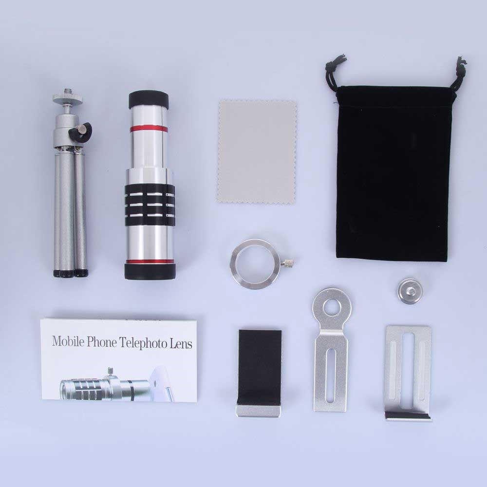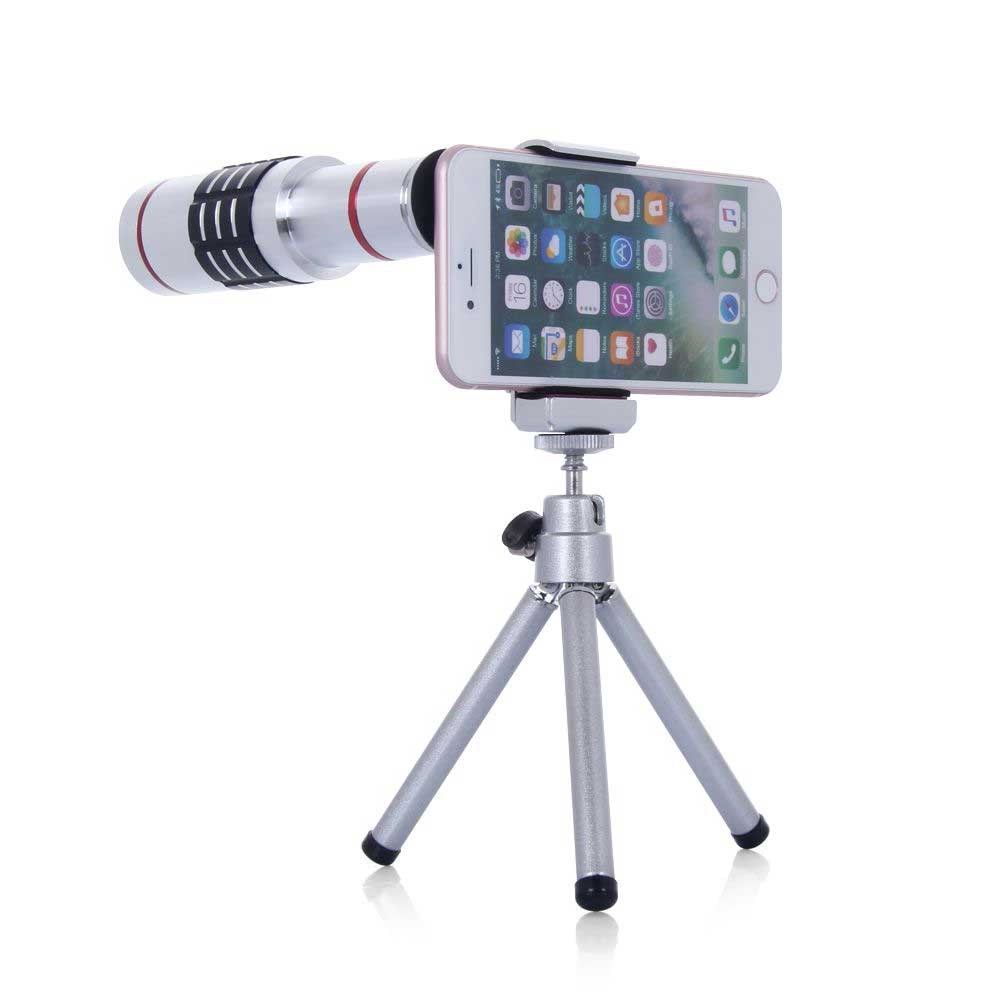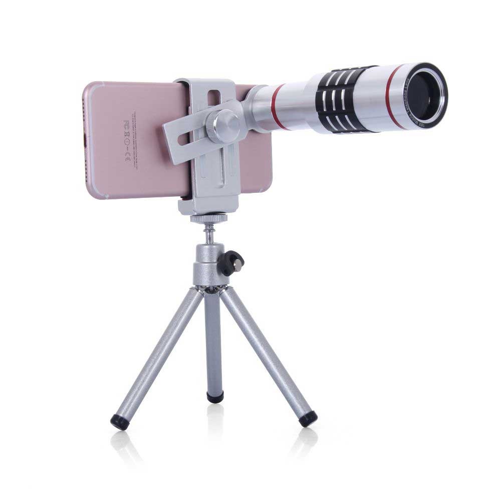 En eksklusiv design med 18x optisk zoom teleskop, mini stativ og en holder til din mobiltelefon.
