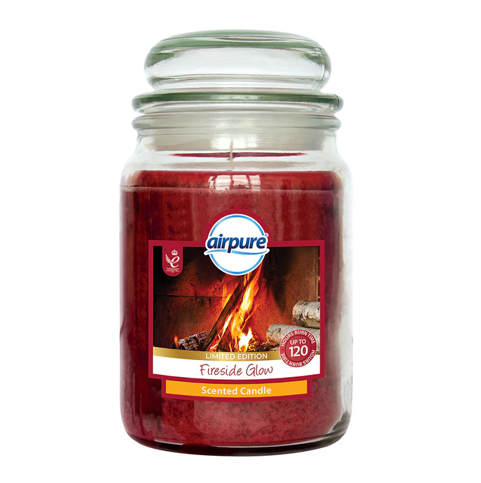 Du får AirPure duftlys - 500 gram - Fireside Glow - Limited Edition - Tilsatt essensiell olje - 120 timer