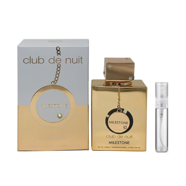 Club de Nuit Milestone av Armaf er en treaktig floral moskusduft for kvinner. Toppnoter er sjønoter, røde frukter og bergamott; midtnoter er fiolett, hvite treslag og sandeltre; basenoter er ambroxan, musk og vetiver.