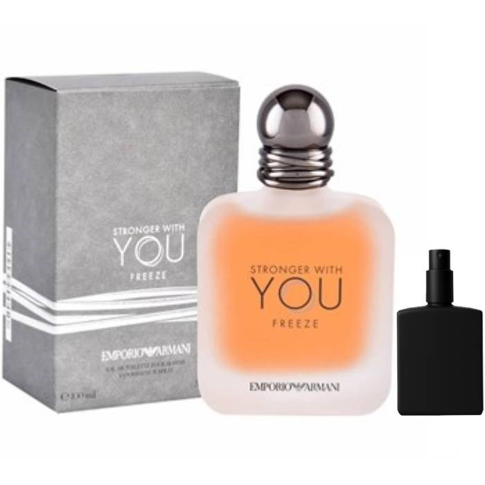 Armani Stronger With You Freeze er en frisk og dynamisk duft som vekker sansene til live. Toppnotene av mandarin og kardemomme gir en sprudlende og energisk start, mens hjertenotene av lavendel og salvie tilfører en sensuell og beroligende dimensjon. Den dype basen av tonkabønner og sedertre gir en varm og maskulin avslutning.