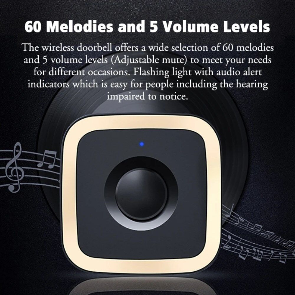 -New Group Smart Home CACAZI FA12 60 sanger hjemme trådløs ringeklokke Vanntett fjernkontroll Smart ringeklokke, 1 sender+2 mottakere pris1396,95 NOKIkke på lager Send mail når varen kommer på lager igen (Leveringstid - fra 3-6 hverdager) Antal Vi sendte alle 7 dager i uken . Les mer herGjelder bare lagervarer Produktinfo Artikkelnummer. TVC-689901521A Produktbeskrivelsene er oversatt fra dansk til norsk - Vi jobber med å oversette produktene, beklager - Hvis du har spørsmål om et produkt, kan vi kontaktes på info@coolpriser.no CACAZI FA12 60 sanger hjemme trådløs ringeklokke Vanntett fjernkontroll Smart ringeklokke, 1 sender+2 mottakere - Gull / EU-plugg Den trådløse ringeklokken tilbyr et bredt utvalg av 60 melodier og 5 volumnivåer for å møte dine behov for ulike anledninger. Blinkende lys med lydvarselindikatorer som er lett å legge merke til for personer inkludert hørselshemmede Rekkevidde på opptil 500 fot / 150m i åpent område, sikrer at du hører og svarer på ringeklokken i tide. Du vil aldri gå glipp av en besøkende selv om du er noen få rom unna eller i en annen etasje. Enkel å installere med den dobbeltsidige teipen eller skruene Enkel å installere. Bare plugg mottakeren inn i stikkontakten og fest senderen på døren, du trenger ikke engang lage hull eller skade noe Knappen er vanntett, ikke bekymre deg for langvarig bruk Spesifikasjoner: Modell: FA12 Musikk: 60 melodier Volum: 5 nivåer (kan justeres til kun å Flash) Sender: Ikke nødvendig med batteri, trykk for å generere strøm Mottaker: Lyser kun når klokken ringer Senderstørrelse: 74mm * 40mm * 20,3mm Mottakerspenning: Koble til strømforsyningen for bruk (AC110V/220V) Mottakerstørrelse: 70mm * 70mm * 22mm Fjernkontrollavstand: 150M rett linje på bakken (data fra fabrikklaboratoriet) Om Coolpriser.no ingen toll og avgifter Levering fra 2-4 dager Godkjent av e-merket Relaterte produkterBedømmelse for CACAZI FA12 60 sanger hjemme trådløs ringeklokke Vanntett fjernkontroll Smart ringeklokke, 1 sender+2 mottakereLog ind for at bedømme produktet Produkt kategorier Veggklistremerker til veggen se utvalget Kjente parfymer se utvalget Gadgets til kjøkkenet se utvalget 0