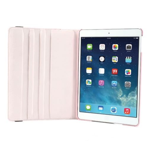 360º roterende veske for iPad Air 2 Plasser din Ipad Air 2 i dette 360º roterende etuiet med deksel og fine detaljer. Dekselet er laget av slitesterkt imitert skinn med et TPU-plastdeksel. iPaden din klikkes enkelt på dekselet, og du får optimal beskyttelse for iPaden din mot riper, støt og støt. Dekselet har en utskjæring på baksiden for kamera og på sidene for knapper og strømplugger. Den 360º roterbare designen gir deg et stativ for iPad-en din slik at du kan se filmer eller lese e-boken håndfri.