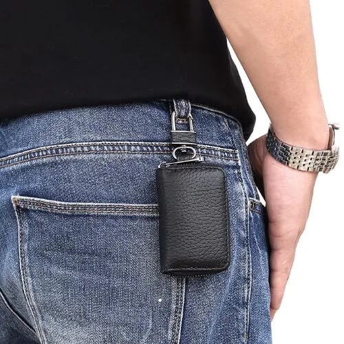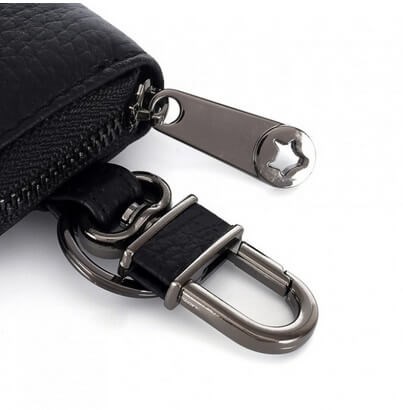 Med en praktisk glidelåslukking kan du enkelt åpne og lukke nøkkelvesken, slik at du raskt kan ta tak i nøklene du trenger. Den kompakte størrelsen gjør den enkel å ha med deg i lommen, vesken eller festet til beltet ved hjelp av det medfølgende kjedet.