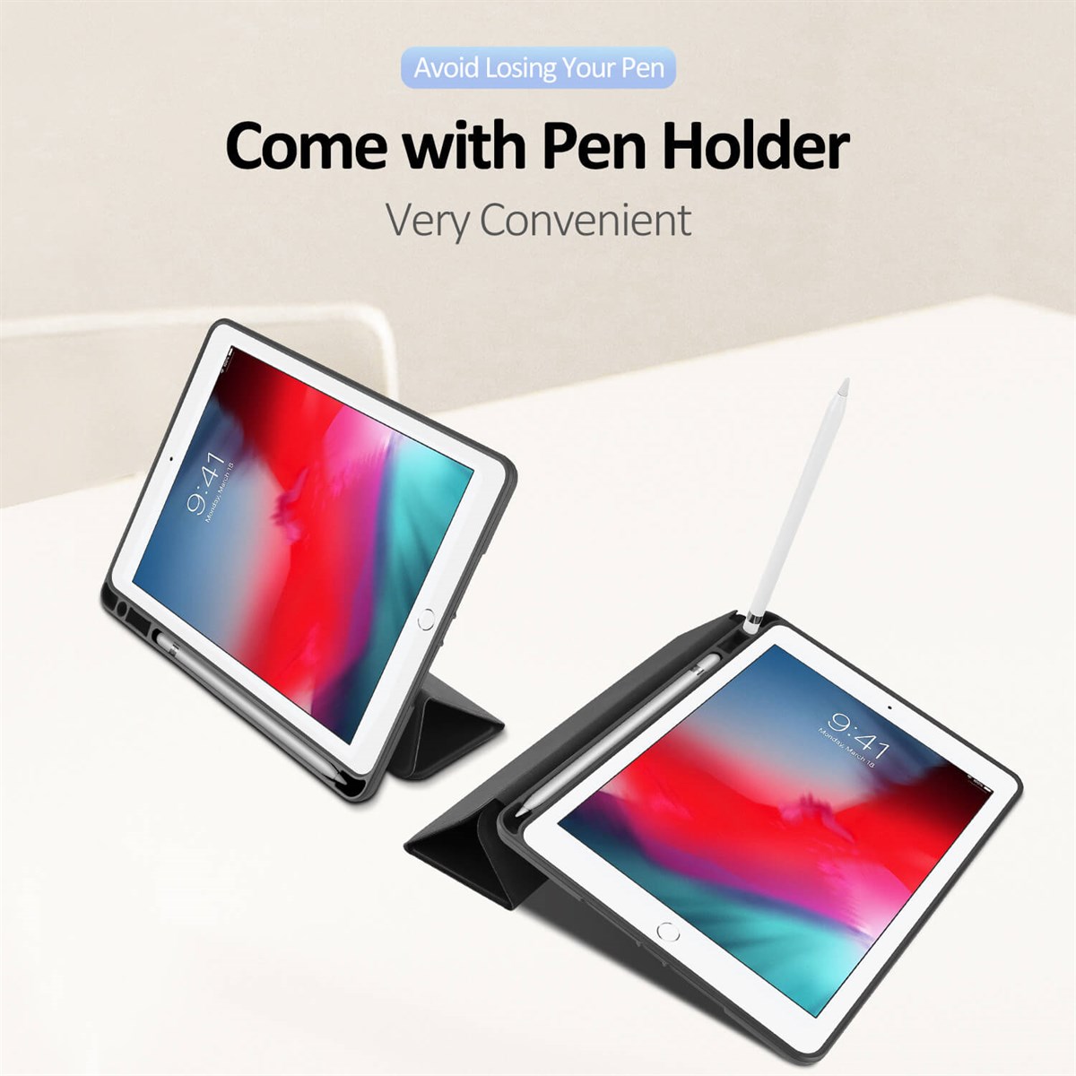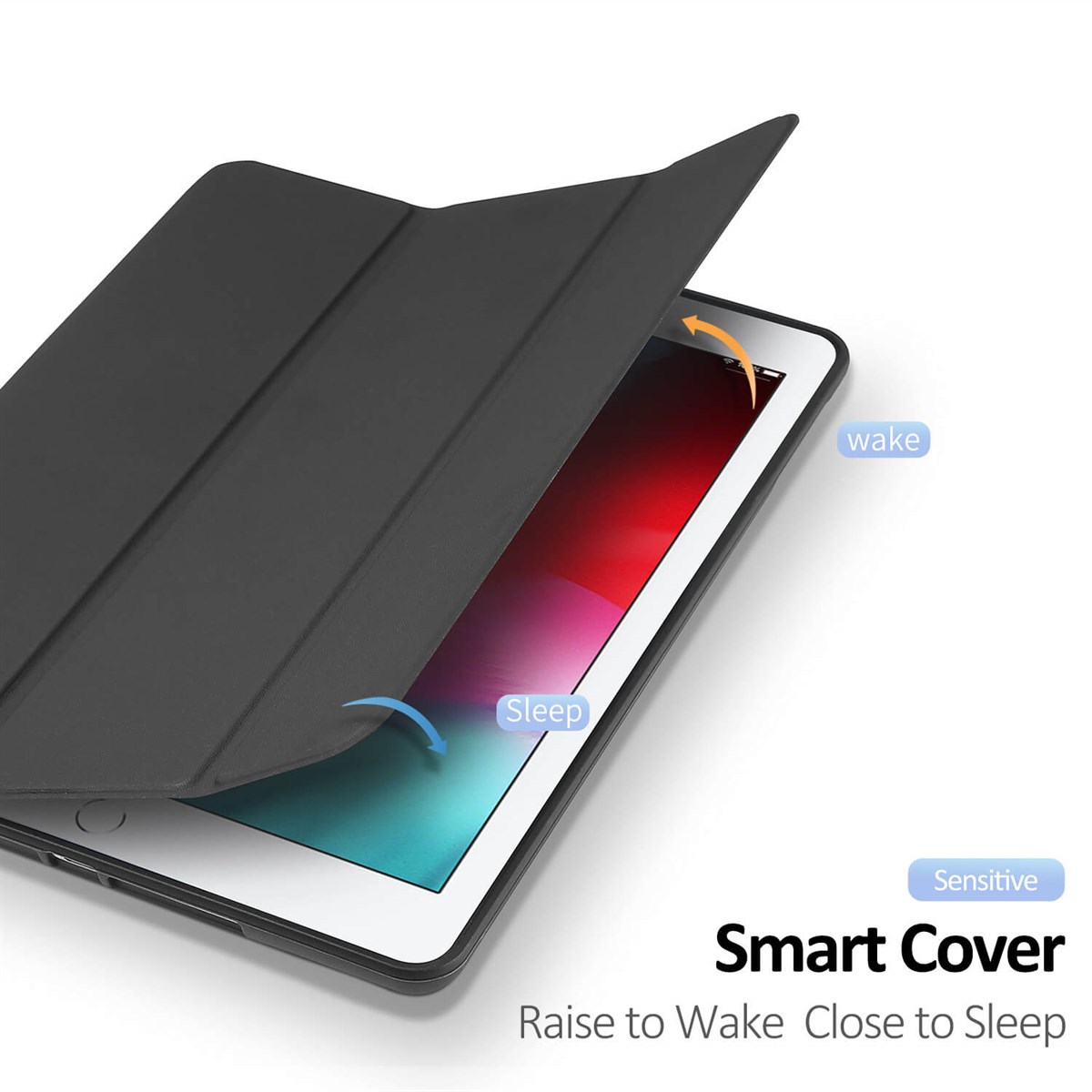 Utstyrt med magnetisk lukking og hvilefunksjon som automatisk slår nettbrettet på eller av når dekselet er åpent eller lukket.