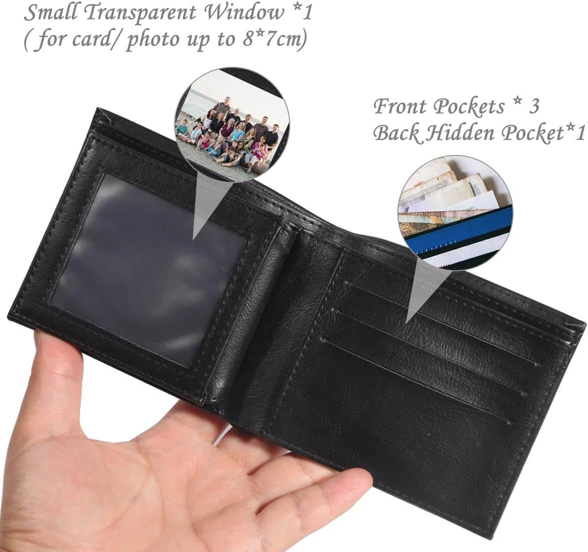 Multifunksjonell: standard lommebok med kredittkort- og seddelrom og et lite gjennomsiktig fotovindu, som du også kan bruke som tradisjonell lommebok.