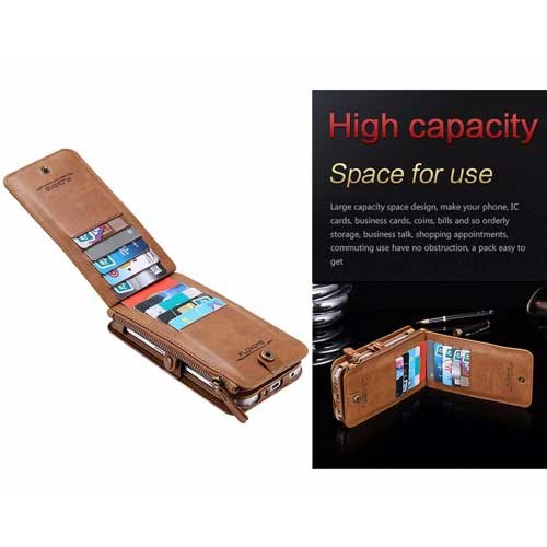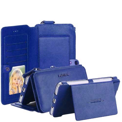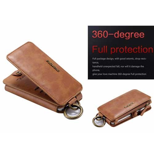 Det magnetiske dekselet kan brukes uten lommeboken, og har bildelomme, kortholder og utskjæring for kamera, knapper og porter.