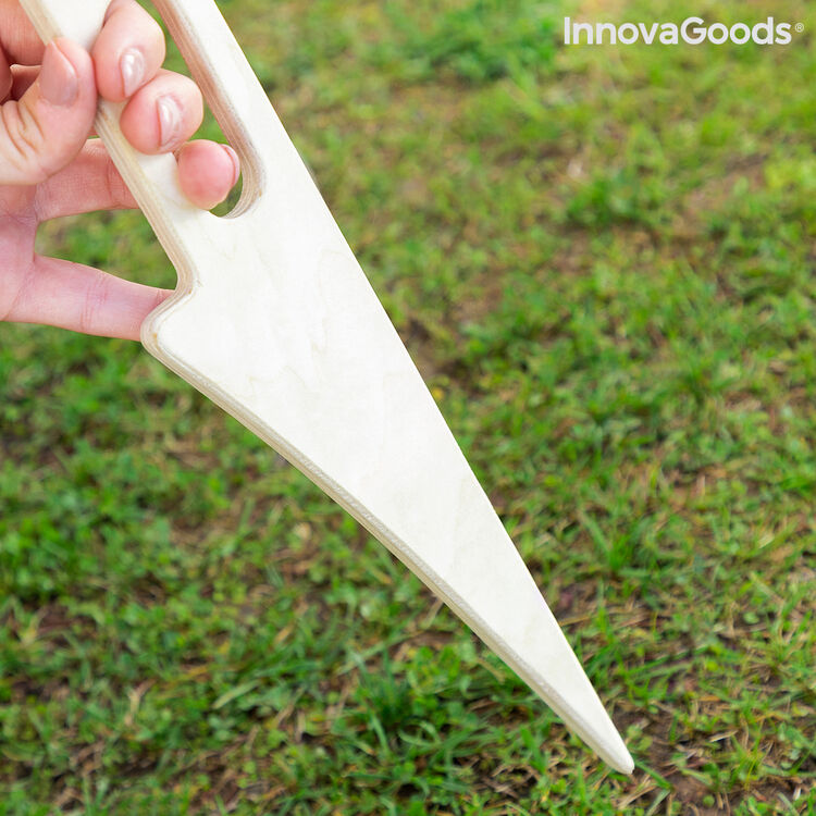 Et sammenleggbart, bærbart vinbord for utendørs, ideelt for å nyte litt avslappende tid i det beste selskapet med en god vin. Den ideelle løsningen slik at du ikke trenger å forlate vin, glass eller snacks på gulvet, og dermed hindre bugs, søl, smuss, etc. Dette originale kalkkryssfinerbordet er robust, lett, enkelt og praktisk å brette og utfolde seg for bruk eller for å spare plass for å gjøre det lettere å transportere og lagre. Det kan lett bæres og settes opp på stranden, på landsbygda, fjell, hage, etc. Alt du gjør er å sette inn det enkle spikeformede benet i bakken (jord eller sand) og det gir et fast grep. Det er enkelt å sette inn og fjerne. Den flate støtteområdet har et hull der du kan plassere en flaske vin og to hull for å plassere to vinglass, og gir fortsatt plass til en liten bolle med snacks eller aperitiffer. Den har også to hull (ett på overflaten og en annen på benet) som kan brukes til å gripe og håndtere det (en av dem er også bærehåndtaket). Det er raskt og enkelt å rengjøre.