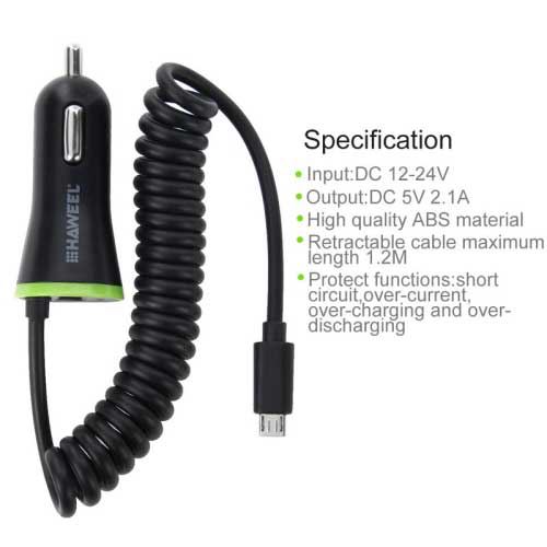HAWEEL 5V 2.1A Micro USB billader 25cm-120cm