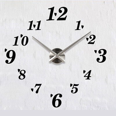 Klokken måler maks 120 x 120 cm, men du kan bestemme lengden selv, og har svarte tall.