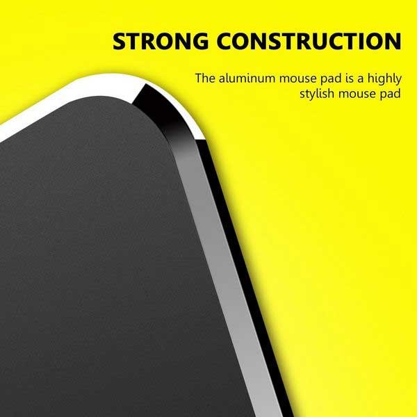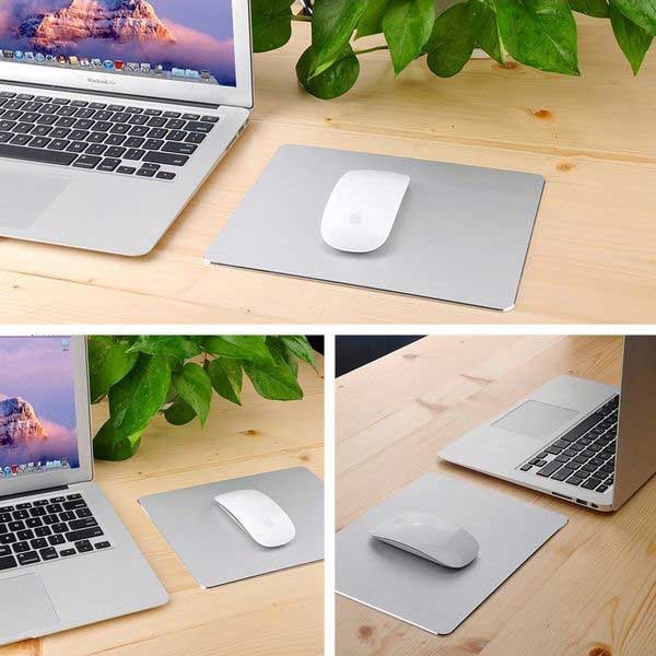 Du får en musematte i en fin og ultra tynn design, laget av metall med aluminiumslegering overflate og silikon base, som gjør det glidende på alle brett.