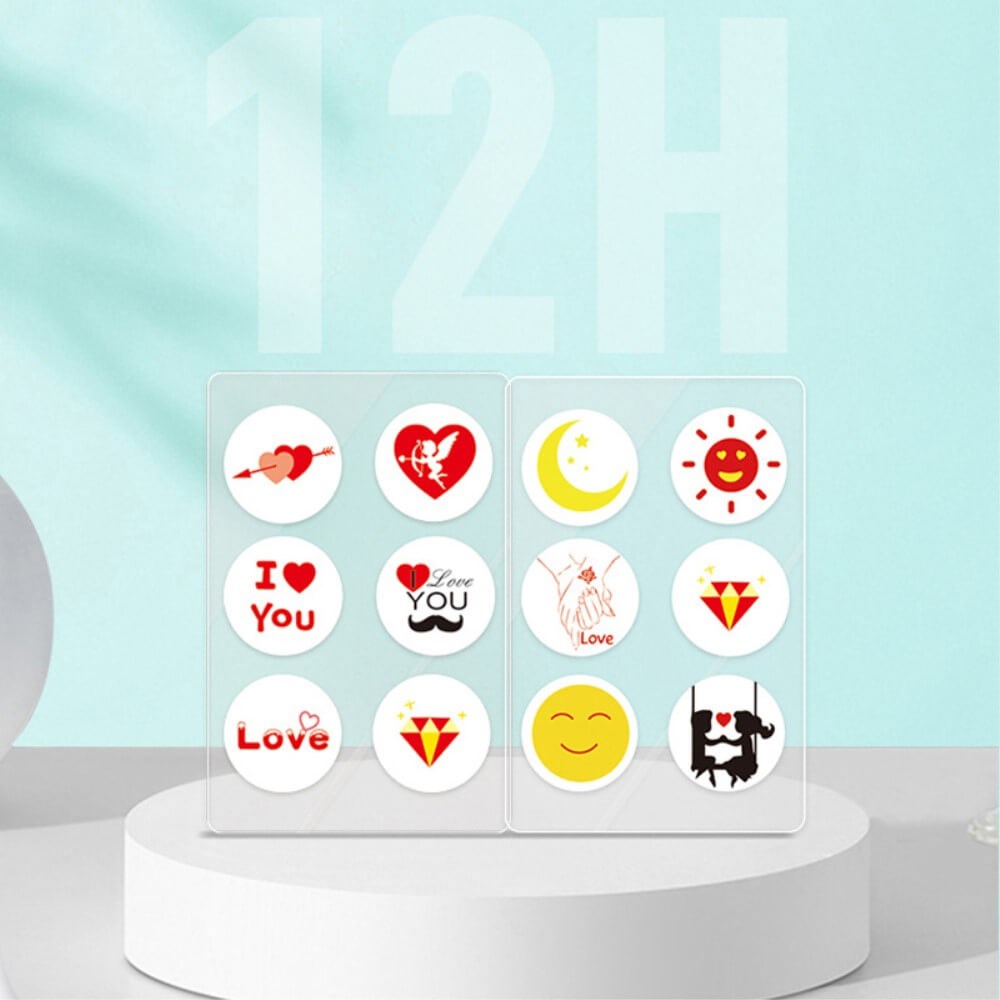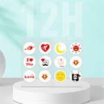 - Enkelt klistremerke størrelse: 2,8 x 2,8 cm