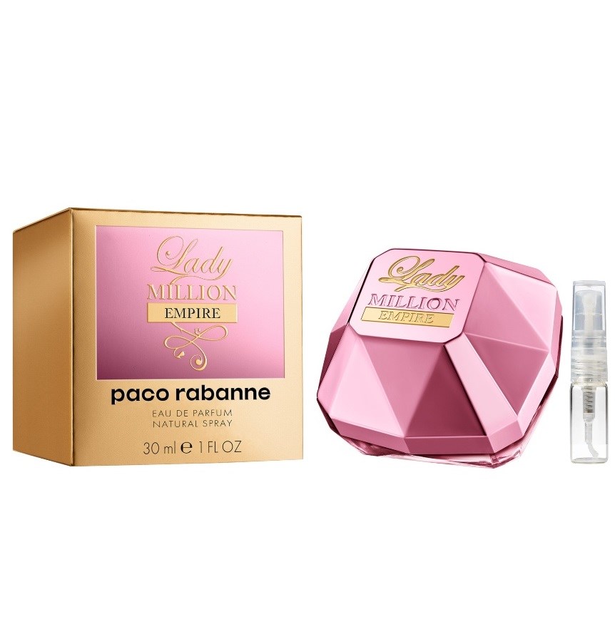 Opplev Paco Rabanne Lady Million Empire Eau De Parfum dufttesten på 2 ml og fordyp deg i en verden av glamorøs og forførende duft. Denne luksuriøse parfymen er designet for kvinner som ønsker å utstråle selvtillit og styrke. Med noter av friske frukter, blomster og treaktige duftnotater, vil Lady Million Empire fortrylle dine sanser og etterlate en uimotståelig duft på huden din.