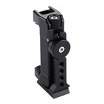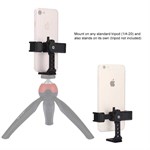 Mobilklemmen kan rotere 360°, slik at telefonen din kan være i vertikal eller horisontal posisjon uten å måtte tas ut av holderen. I den ene enden av Mobile Clamp kan du montere en mikrofon eller kameralys via en hot shoe-adapter (ikke inkludert).
