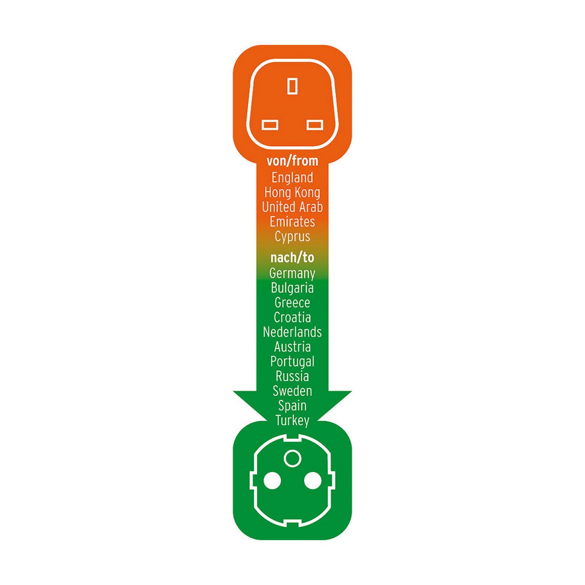 • Adapter enabling electrical equipment using the British plug system to be used in countries using an earthed socket system, e.g. DE, FR, BE, PL, NL, ES, PT, SE, FI, NO, GR, TR, AT ...