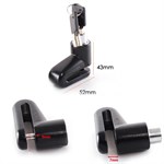 Settet består av solid metalllås og tilhørende kabel, slik at enheten kan klemmes for fast montering.