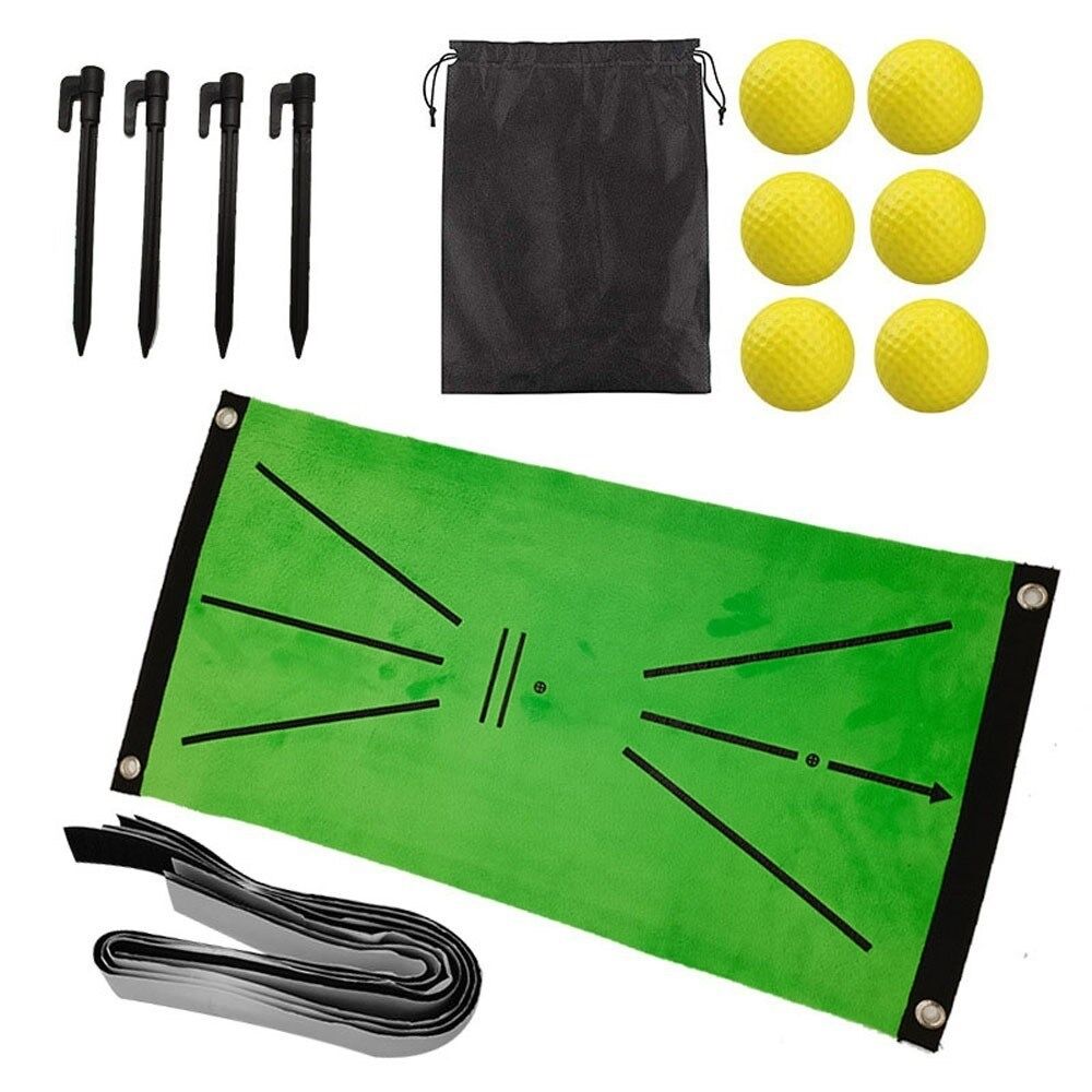 Sklisikker golfmatte for svingdeteksjon Batting Bærbar golftreningshjelpemidler Teppe 24 x 12 tommer med 6 golfballer
