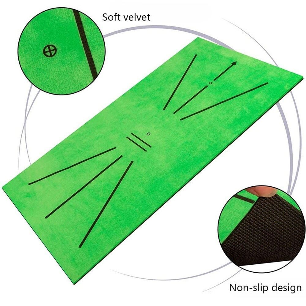 • Høykvalitets golftreningsmatte, overflaten er laget av myk fløyel, vil ikke skade køllen din, den tykke sklisikre gummibasen kan holde matten på plass under treningen
