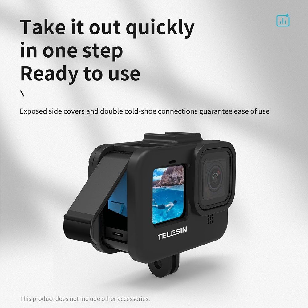 TELESIN GP-FMS-903 Beskyttende kameraramme - Anti-dråpeveske for GoPro Hero 9 & 10 Genialt strukturelt design hjelper kameraet med å enkelt oppnå horisontal og vertikal fotografering.