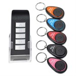 Match: Bruk en penn eller en nål for å tenne den første nøkkelringen, den piper kontinuerlig. Trykk på "A"-knappen, LED på, og pipelyden stopper etter matching. Dette gjøres på alle fem nøkkelringene. Plasser nøkkelringene på opptil fem gjenstander.