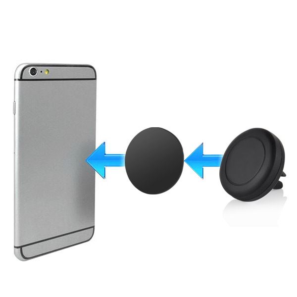 For lite penger kan du nå sikre telefonen på stasjonen enkelt og greit. Holderen monteres i bilens luftkanaler, og den tynne magnetplaten med lim plasseres på baksiden av telefonen.