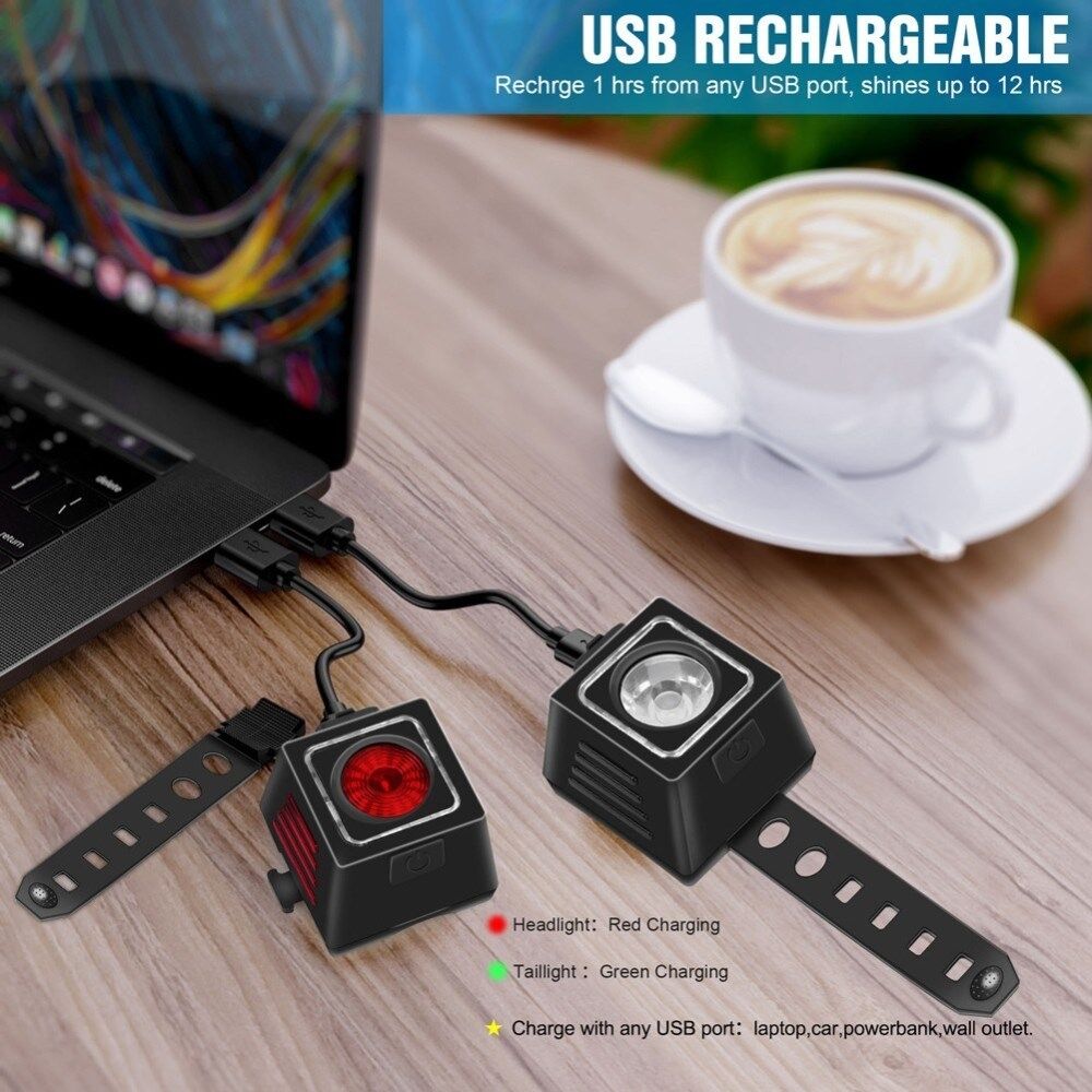 USB Oppladbart Sykkellyssett - Superlys - For- og Baklys - Sykkeltilbehør for Nattsykling