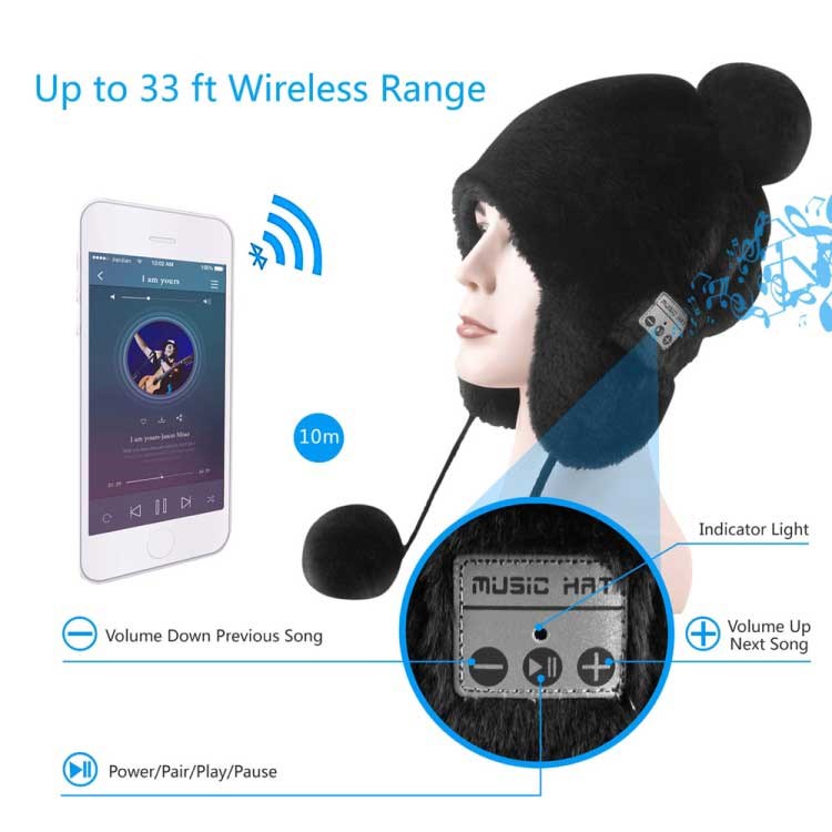 Du kobler til din iPhone, iPad, MP3-spiller eller annen USB-enhet med Bluetooth-funksjon, og du kan nyte musikken din eller lytte til lydboken din uten å måtte bry deg med kabler og kalde ører. Luen er plysj og et godt valg som gave til tenåringen eller kjæresten.
